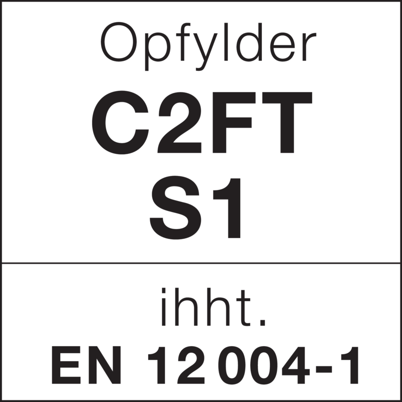 - Opfylder C2FT S1 i henhold til EN 12004.