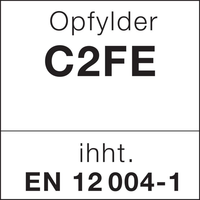 - Opfylder klassificering C2FE i henhold til DIN EN 12004.