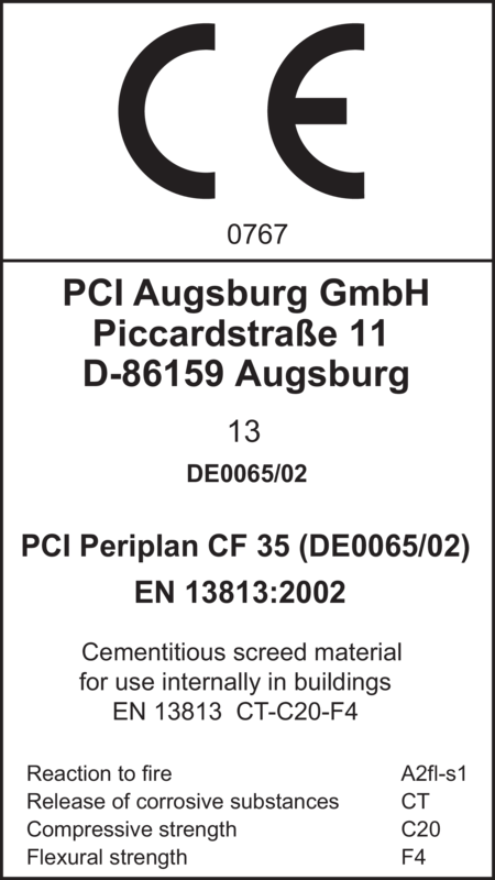 - PCI Periplan CF 35 er en pulverblanding, som på stedet tilsættes vand og omrøres til en let flydende, selvnivellerende udjævningsmasse. Det bedste resultat opnås, når der på sugende underlag som f.eks. beton forinden grundes med PCI Gisogrund, PCI Gisogrund Rapid og på ikke sugende underlag eller træplader anvendes PCI Gisogrund 404.
